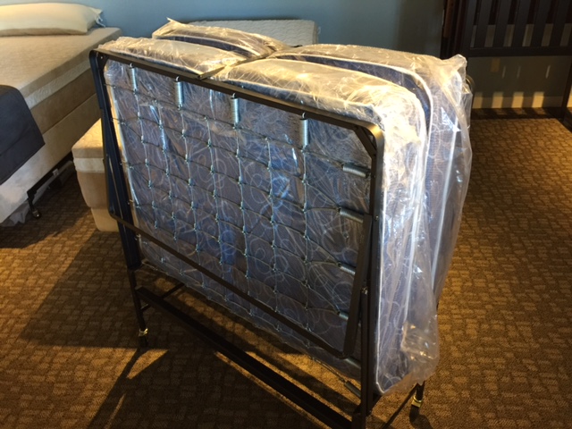 Don’t want something as large as a daybed? Another option for storing extra sleeping space, is our rollaway beds by Hollywood Bedframe Company. It’s a twin size mattress with a metal platform that folds upward in half and rolls away to hide when you don’t need it! Its even small enough to fit in a closet next to your favorite pair of shoes!