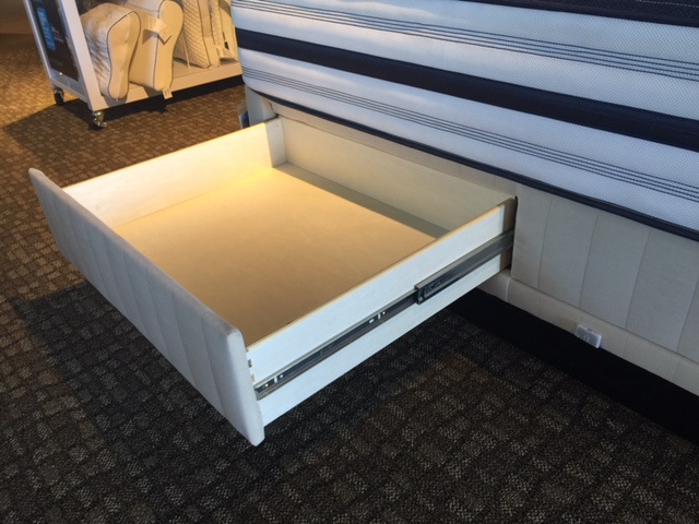 If you thought you’ve seen it all, you haven’t! Here is a genius way to add storage to your bedroom without adding any extra dressers, nightstands, or closet space. Introducing Storage Foundations by Seahawk! These strong solid wood foundations (formerly known as box springs) have up to 4 drawers built into the foundation and pull out to almost 2 feet of extra storage! Your mattress sits right on top of these, with your bed frame underneath! These beauties are available in all sizes from Twin to King and have a nice suede velvety feel!
