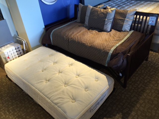 I’m sure we’ve all seen the horrifying episodes of Hoarders where piles and piles of clothes, books, or 10 years of rubbish are stacked throughout the bedroom making it impossible to move, sleep or even BREATHE! Although this lifestyle completely fascinates us, it seems as if we are moving towards a trend of simplicity. Less is more! We are always finding ways to make more out of a smaller space, without having too much clutter and craziness. At SlumberWorld, we offer several innovative solutions to give your living area some extra breathing room – and remain functional at the same time. Are you the popular friend that always has guests over? Need some extra sleeping space? Our Pop Up Trundle piece by Leggett & Platt allows you to store a twin size mattress underneath a day bed. During the day it remains hidden, and at night when you need it…just pull it out and pop it up! Not only does it save space, but it is great for guests who would rather sleep separate. The trundle comes with wheels, so you can roll it to wherever you’d like it in the room. Our daybeds are either solid wood construction or durable metal. Add a hip daybed cover, some pillows, and you’ve got an amazing accent piece that will last a long time.